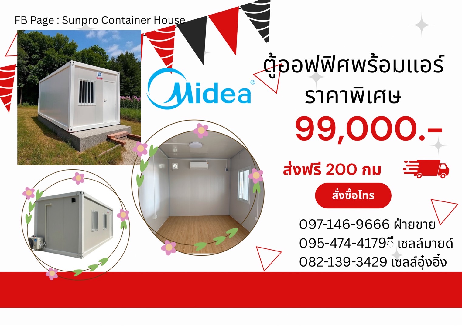ตู้สำนักงานสำเร็จรูป รุ่นคลาสสิก พร้อมแอร์ - ขนาด 3.0x6.0x2.80 ม. - เครื่องปรับอากาศ ยี่ห้อ Midea ขนาด 12000 บีทียู